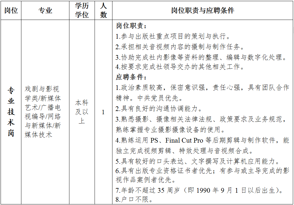 中国卫生科教音像出版社关于2025年聘用 人员公开招聘的公告