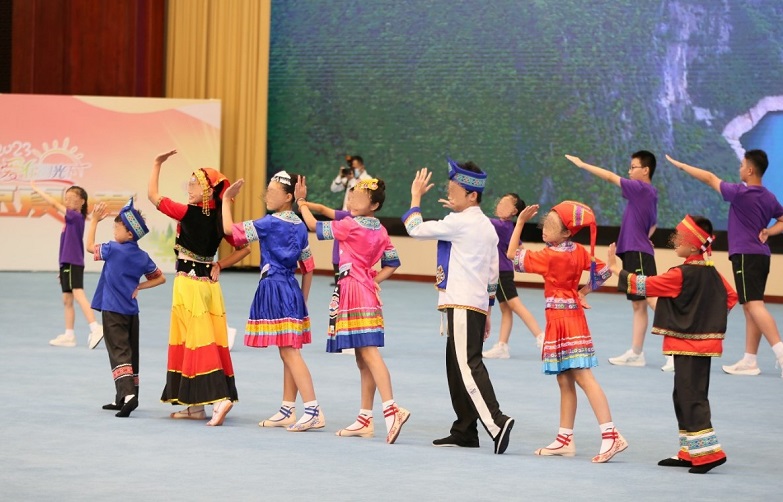 开营式上,中国健康教育中心党委书记、主任李长宁,中国性病艾滋病防治协会会长郝阳等嘉宾为积极参与游戏的小营员们送上了装满乡情的特产大礼包,希望他们开拓视野、增长见识,更加热爱祖国、热爱家乡!红丝带健康大使鞠萍主持开营式,红丝带健康大使陈道明和小营员们朗诵了《七律·长征》,重温峥嵘岁月,致敬长征精神,小营员们还表演了民族舞蹈,分享美丽家乡的故事。小营员代表对党和政府及社会各界给予的关心关爱,表达了真挚的感激之情。