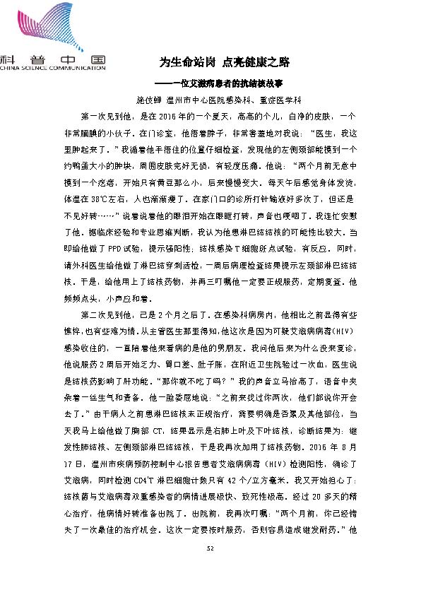 身边的结核病故事——为生命站岗,点亮健康之路