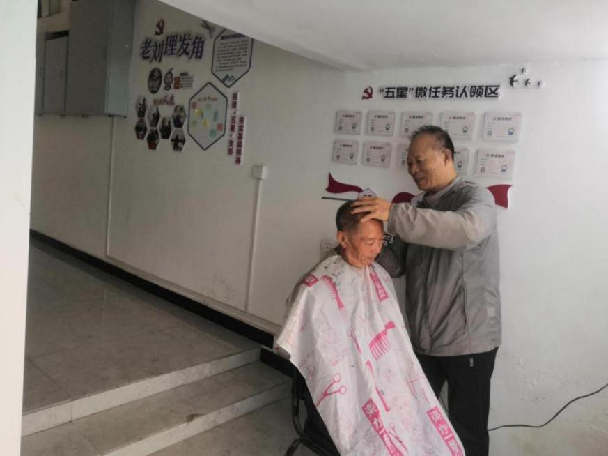 火车站社区老刘理发角为老年人提供义务理发服务