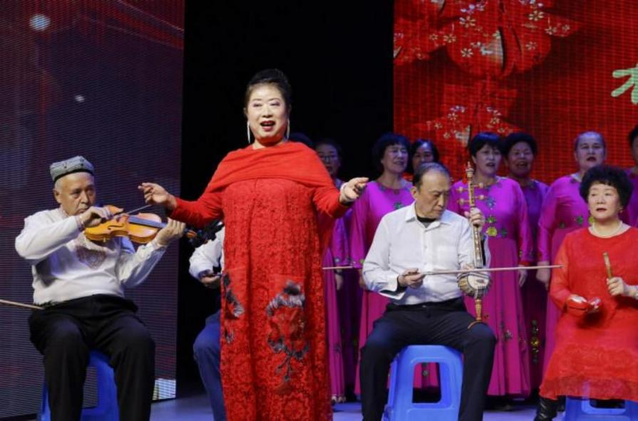 2.老有所学,打造文艺互学平台。利用现有阵地,采取社区搭台、居民唱戏方式,社区组建了舞蹈队、模特队、合唱团和器乐队等6支老年活动团体,参与老人 370 余人,帮助老年群体走出家门,广交朋友。每天在社区功能室开展各类文体活动,为辖区传统文化传承发扬带来更多的动力和活力,同时也为社区打造了一支主动参与社区建设的中坚力量。其中,“星光 ”老年合唱团尤为突出。该合唱团由辖区6个少数民族的老年群体组成,现有队员 120 余人。队员阿孜古丽的丈夫在她 51 岁时去世,留下 3 个孩子。退休后突然闲下来后变得焦躁不安,患上了轻度抑郁症。经社区工作人员多次劝说,阿孜古丽加入合唱团,在队员们的热心帮助下,汉语越来越好,并学会了唱歌和舞蹈。随时间变长,阿孜古丽忘掉了忧伤,精神注意力转移到更有意义的事情上,由以前的拘谨,变得越来越开朗,更善于表达了。阿孜古丽说: “我在合唱团 5 年了,大家就像石榴籽一样紧紧抱在一起,我要一直在这里,和大家一起歌唱我们现在的幸福生活。”